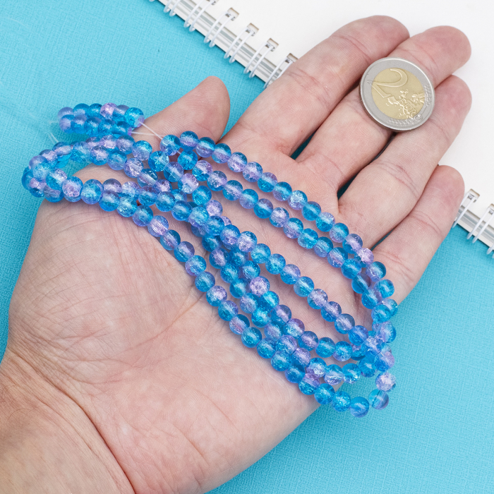 Koraliki Crackle Okrągłe 6mm Kolor: Niebieski ok. 127szt/76cm/nić (3WB5822)