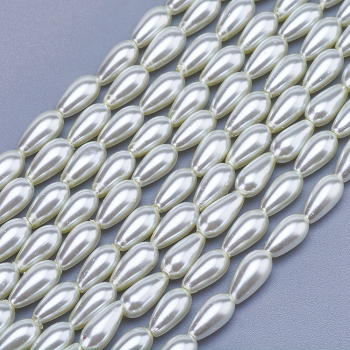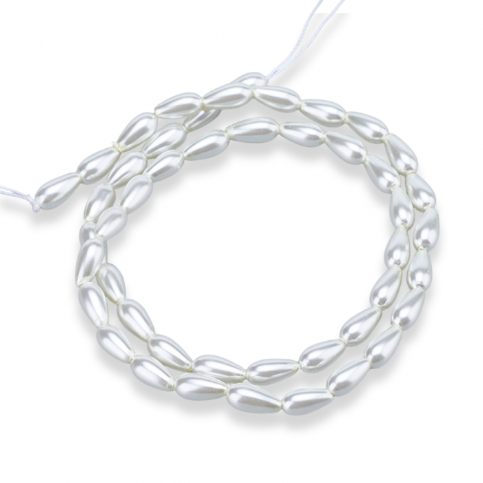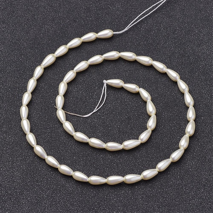 Koraliki Perły Szklane, Błyszczące, Kropla, Biały, 8x4.5mm, Otwór: 1mm, około 50szt / 41cm / sznur (3WB1813)