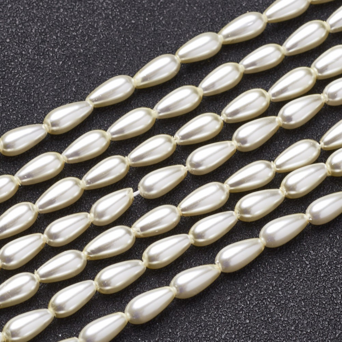 Te szklane koraliki w kształcie kropli z błyszczącym wykończeniem i białym kolorem imitują perły i nadają wyrobom subtelny i elegancki wygląd. Ich kształt kropli i połysk czynią je idealnymi do tworzenia wyszukanej biżuterii.