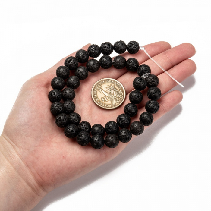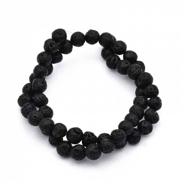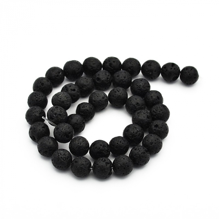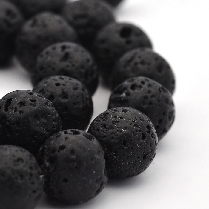 Koraliki Naturalna Lawa, Okrągłe, na nici, Niebarwione Kraj pochodzenia kamienia: Chiny Kolor: Czarny