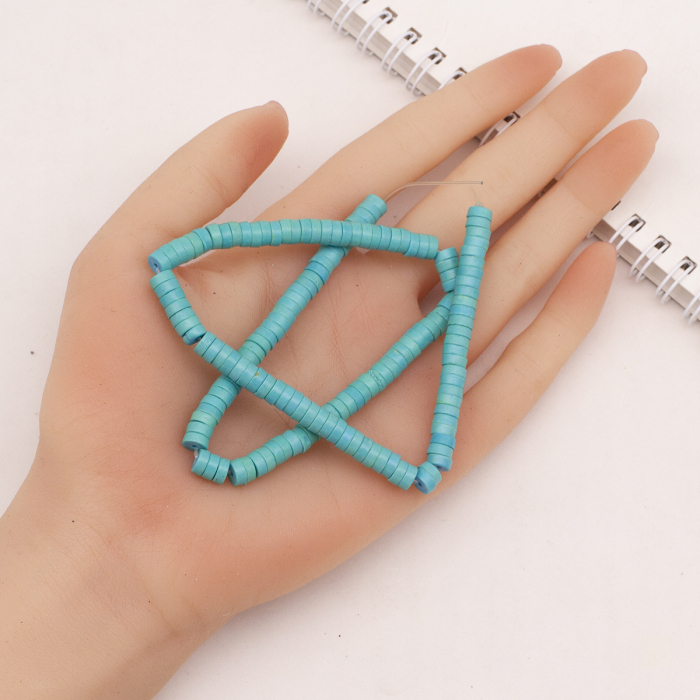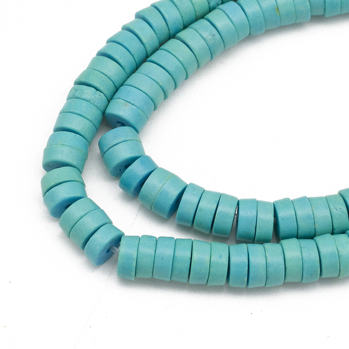 Koraliki Syntetyczne z Turkusu, Koraliki Heishi, okrągłe płaskie, na nitce, barwione