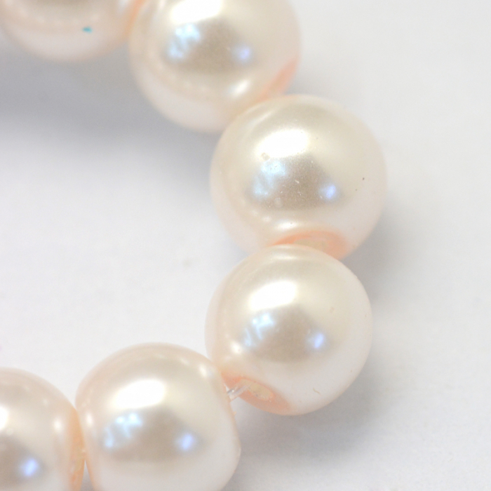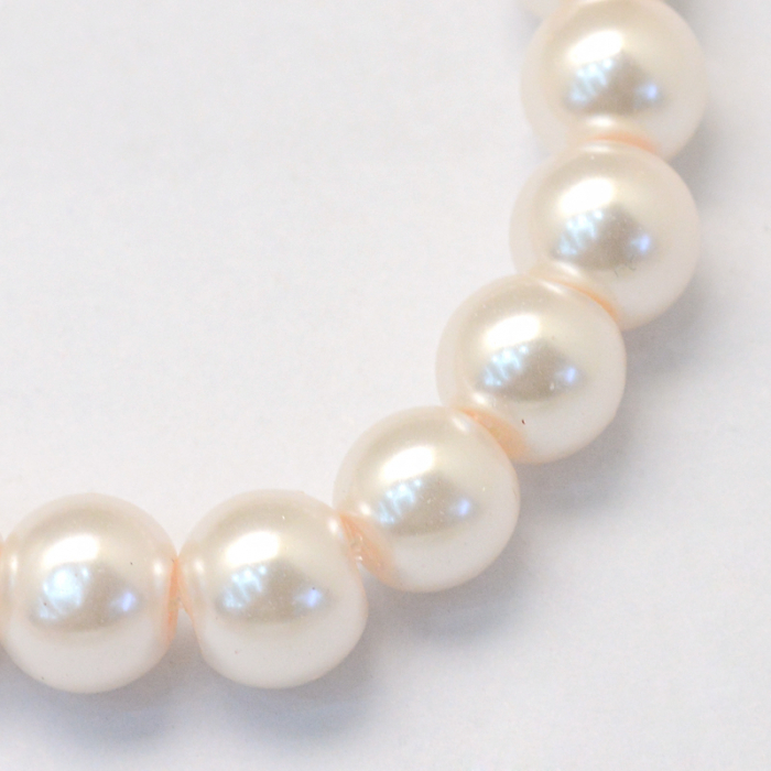 Szklane koraliki perłowe wykonane są techniką „Baking Painted”, polegającą na nałożeniu na powierzchnię farby i utwardzaniu poprzez wypalanie. Daje to mocną i trwałą powłokę, która zachowuje swoje właściwości przez długi czas. Koraliki posiadają jasny perłowy połysk, dzięki czemu wyglądem przypominają perły naturalne. Dzięki wysokiej jakości szkłu i trwałej powłoce nie tylko wyglądają elegancko, ale są również odporne na uszkodzenia, co czyni je praktycznym wyborem do różnorodnych celów.