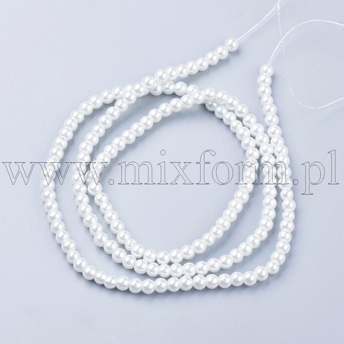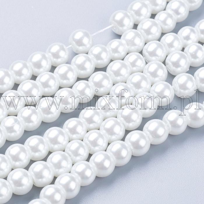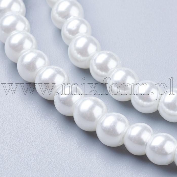 Koraliki Perła do Rzemiosła, Szkło Błyszczące, Okrągły, Białe, 6mm, około 130szt/75cm/sznur (Q6WB452)Opakowanie:
