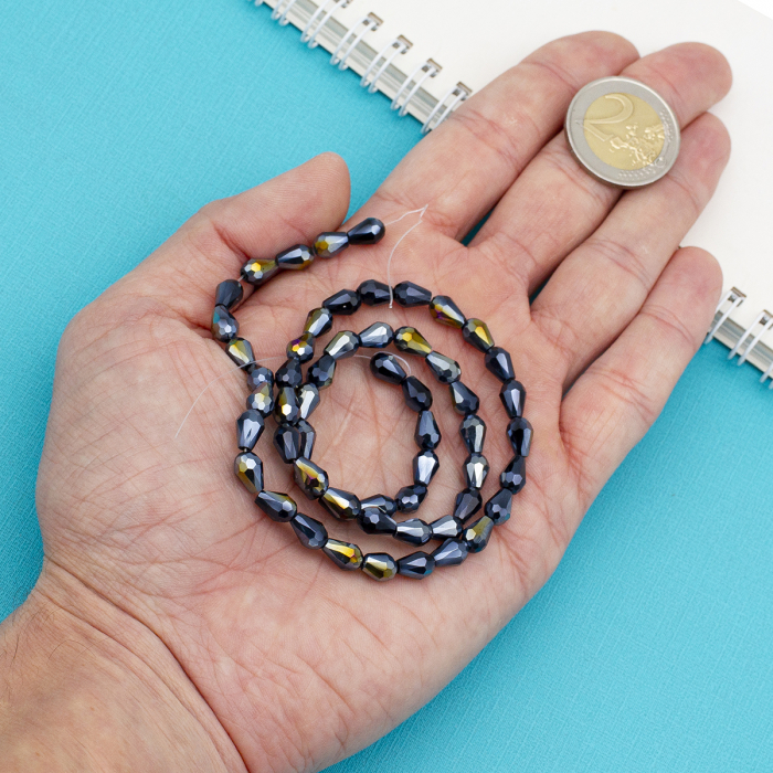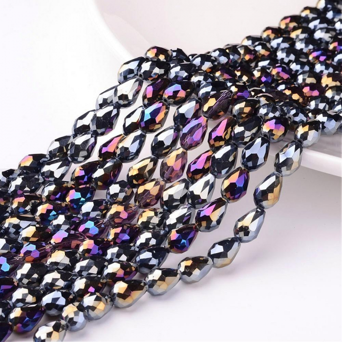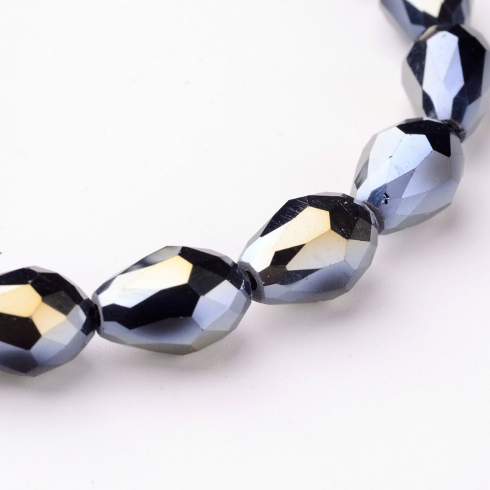 Koraliki Szklane Galwanizacja Fasetowane Kropla 7x5mm Kolor: Czarny ok. 62szt/43cm/nić (14WB7032)