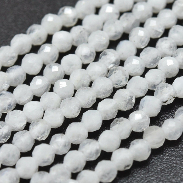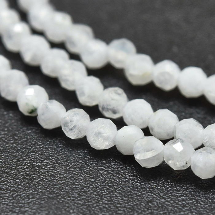 Koraliki Naturalny Tęczowy Kamień Księżycowy Okrągły Fasetowany, Niebarwiony, na nici Kraj pochodzenia kamienia: Republika Południowej Afryki