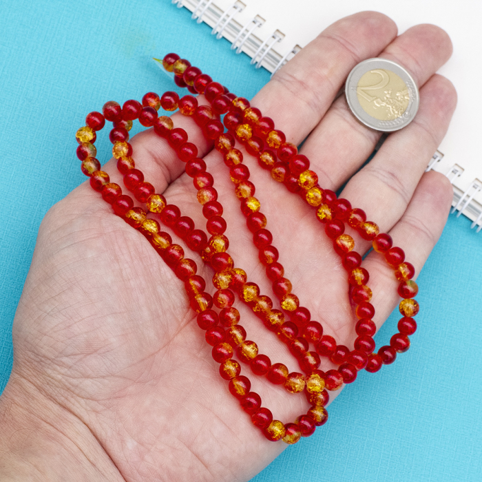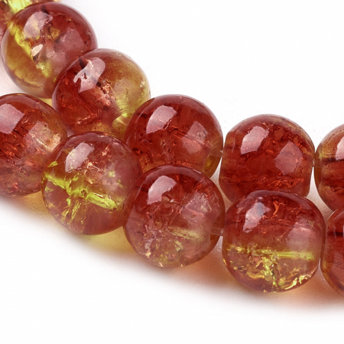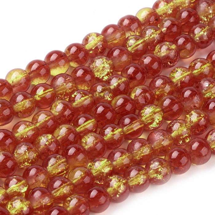 Koraliki Dwukolorowe Crackle Okrągły Średnica: 6mm Otwór 1.3-1.6mm Kolor: Pomidorowy około 127szt/76cm/nić (13WB28723)