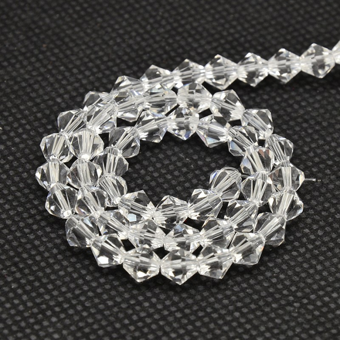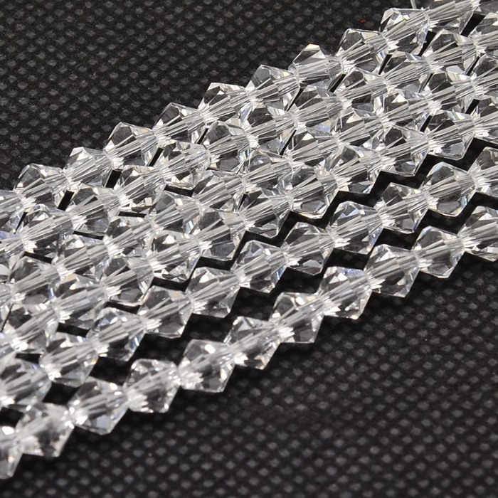 Koraliki szklane imitujące austriacki kryształ klasy AA to znakomity materiał do tworzenia biżuterii i ozdób. Wykonane z wysokiej jakości szkła, mają kształt bicone i wiele faset, dzięki czemu koraliki mają jasny połysk i skutecznie załamują światło. Koraliki te są imitacją austriackiego kryształu ciętego 5301, klasycznego wzoru popularnego w biżuterii i dekoracjach ze względu na wysoką symetrię, doskonałą zdolność załamywania światła i wyjątkową jakość AA.