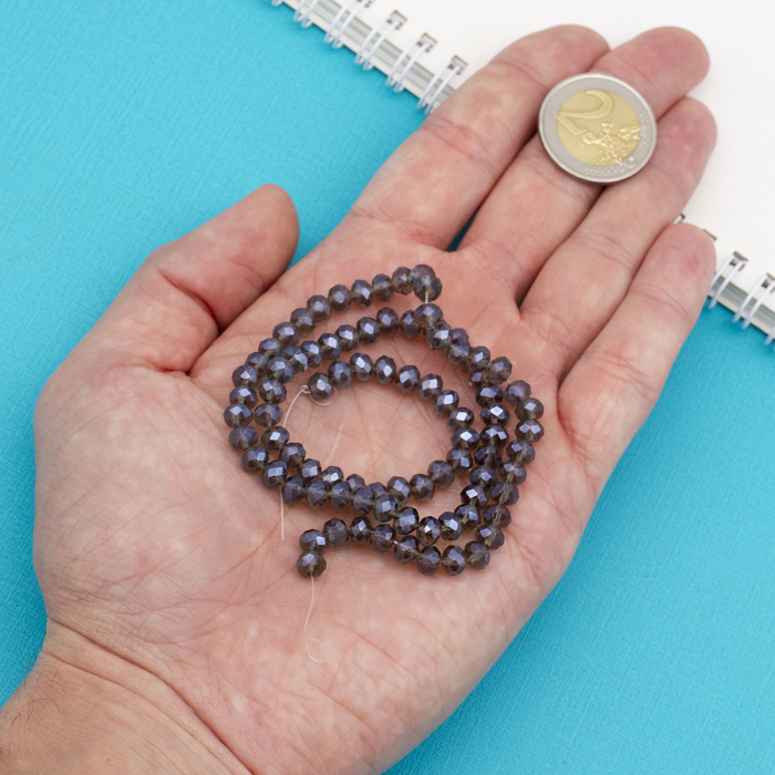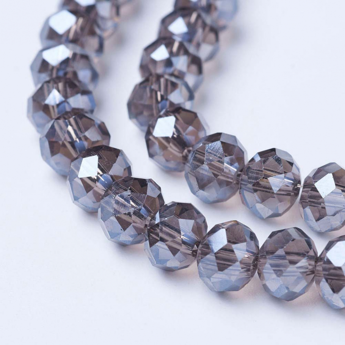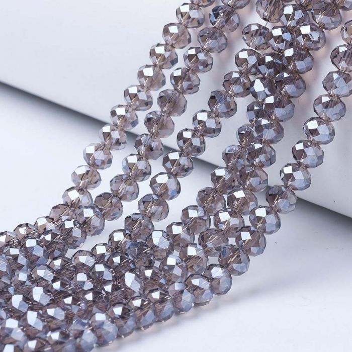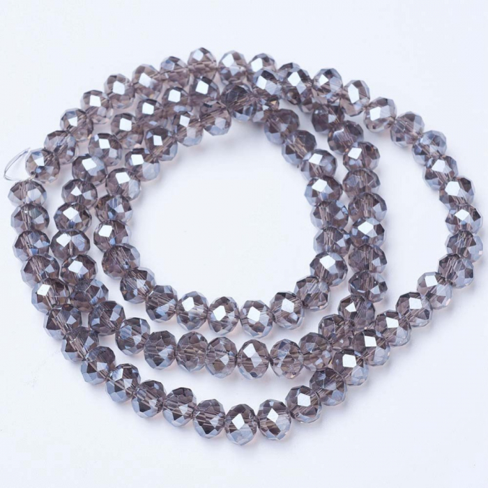 Koraliki Szklane Galwaniczne Perłowy blask Fasetowane Rondel Rozmiar: 6x5mm Kolor: Szary około 80szt/39cm/nic (13WB28745)
