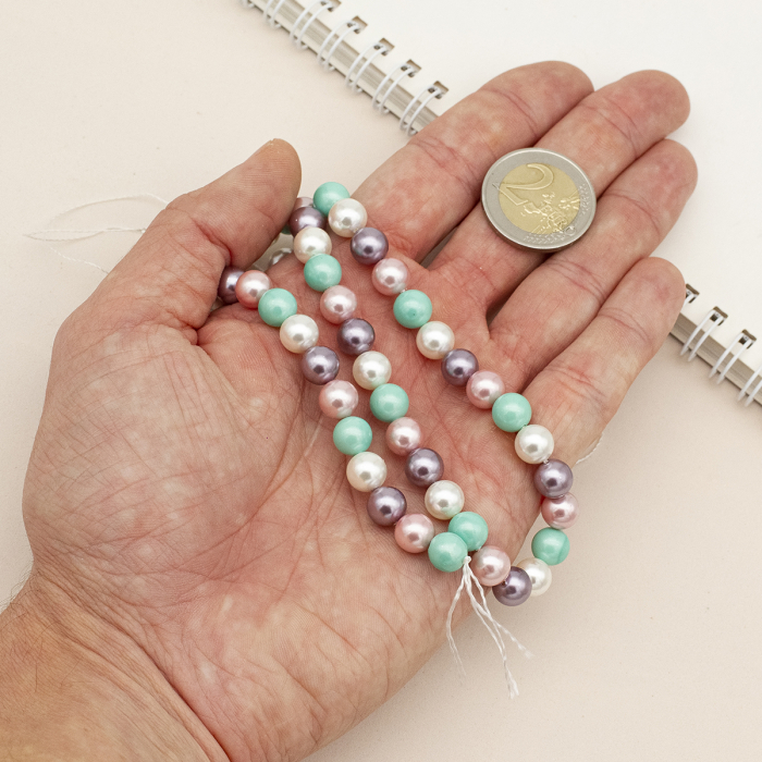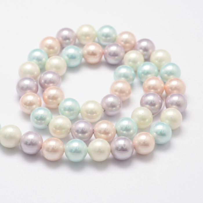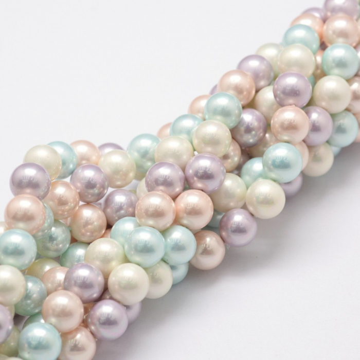 Koraliki Shell Pearl Okrągłe, Klasa A, Mieszane, 8mm, otwór 1mm, około 50szt/40cm/sznur (13WB15169)