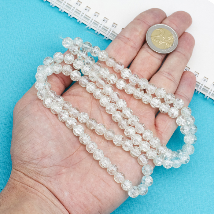 Koraliki Crackle to przezroczyste, szklane elementy, które posiadają niepowtarzalną fakturę. Ich wewnętrzna powierzchnia pokryta jest drobnymi pęknięciami, tworząc efekt chaotycznych krawędzi. Dzięki temu koraliki emitują niesamowity połysk i mienią się w słońcu. Każdy koralik wygląda jak małe dzieło sztuki, co czyni je idealnym wyborem dla tych, którzy chcą dodać odrobinę oryginalności swoim projektom. Należy pamiętać, że kolory mogą się nieznacznie różnić ze względu na wyświetlanie monitora.