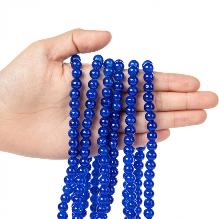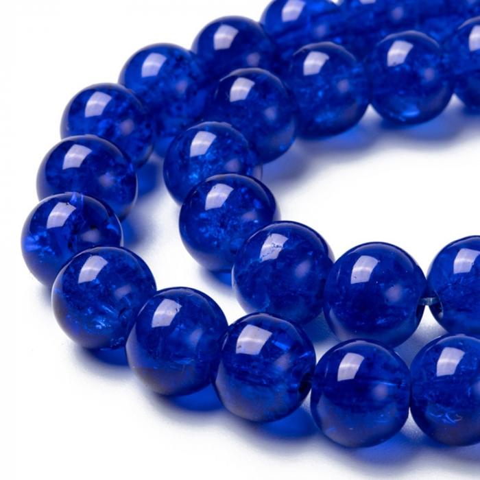 Koraliki Szklane Crackle, Okrągłe, Niebieskie, 8mm, Otwór 1mm, około 95szt/76cm/nić, (3WB2848)