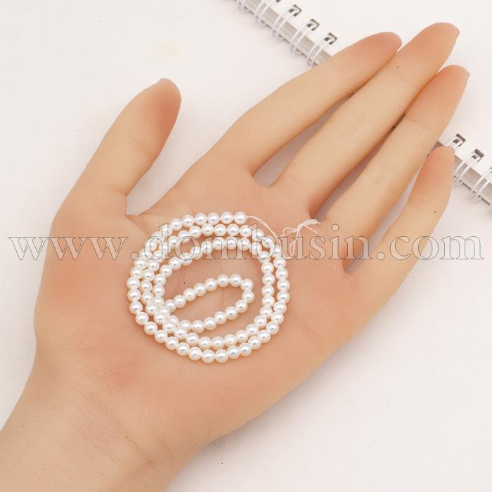 Koraliki Shell Pearl Klasa A Okrągłe, Białe, 4mm, Otwór 1mm, około 90szt/36cm/sznur (14WB7420)Opakowanie: