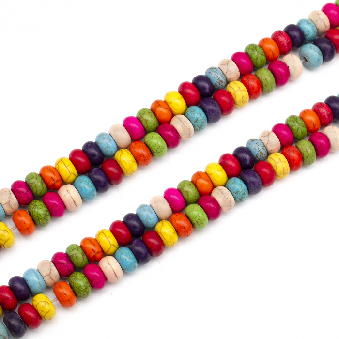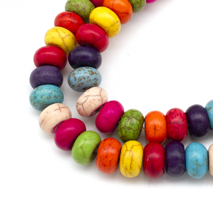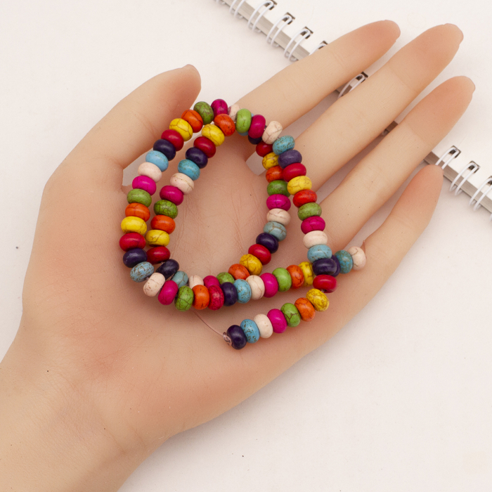 Syntetyczne turkusowe koraliki w kształcie krążków idealnie nadają się do tworzenia wyrazistych bransoletek, naszyjników, kolczyków i innych akcesoriów. Pięknie komponują się z metalami, skórą i materiałami naturalnymi, co czyni je doskonałym wyborem do biżuterii boho, etnicznej lub współczesnej. Koraliki te doskonale nadają się również do nakładania warstw biżuterii, dodawania akcentów kolorystycznych i tworzenia niepowtarzalnych akcesoriów.