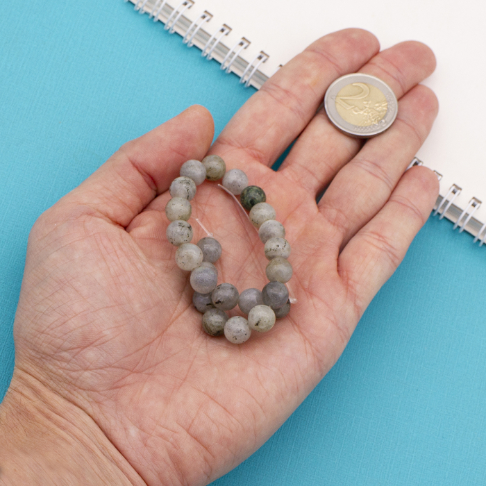 Koraliki okrągłe wykonane są z naturalnego labradorytu, który charakteryzuje się bogatą fakturą i głębią koloru, dzięki czemu każdy koralik jest wyjątkowy i niepowtarzalny. Labradoryt znany jest ze swojej wyjątkowej opalizacji – gry światła na powierzchni kamienia, tworzącej efekt „zorzy polarnej” w odcieniach od zieleni do błękitu. Koraliki niebarwione zachowują swój naturalny kolor, dzięki czemu idealnie nadają się do tworzenia biżuterii podkreślającej naturalne piękno kamienia. Labradoryt uważany jest za kamień mistycznej energii i przemiany. Pomaga odkryć intuicję, chrosznur przed negatywnymi energiami i sprzyja rozwojowi duchowemu. Labradoryt pomaga skoncentrować się i zachować jasność umysłu, umożliwiając dostęp do wewnętrznej wiedzy.