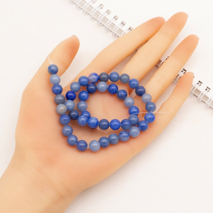 Koraliki z niebieskiego awenturynu to efektowny materiał o wyrazistym kolorze i delikatnym połysku. Dzięki barwieniu i obróbce termicznej kamienie zyskały intensywniejszy odcień, zachowując jednocześnie naturalną strukturę i estetykę. Doskonale nadają się do tworzenia biżuterii o eleganckim i nieco mistycznym charakterze.