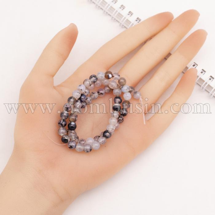 Koraliki Naturalny Agat Smocza Żyła, Termobarwione, na nici Kraj pochodzenia kamienia: Brazylia Kolor: Czarny