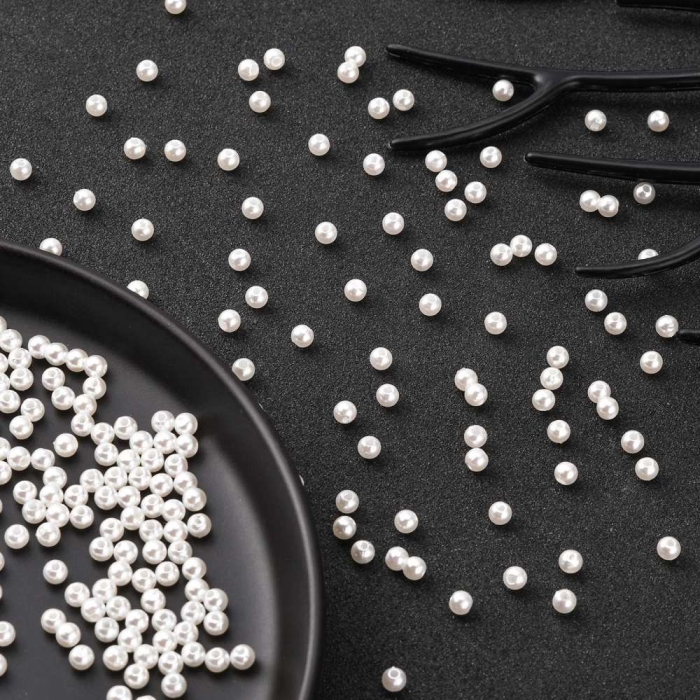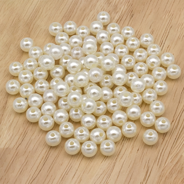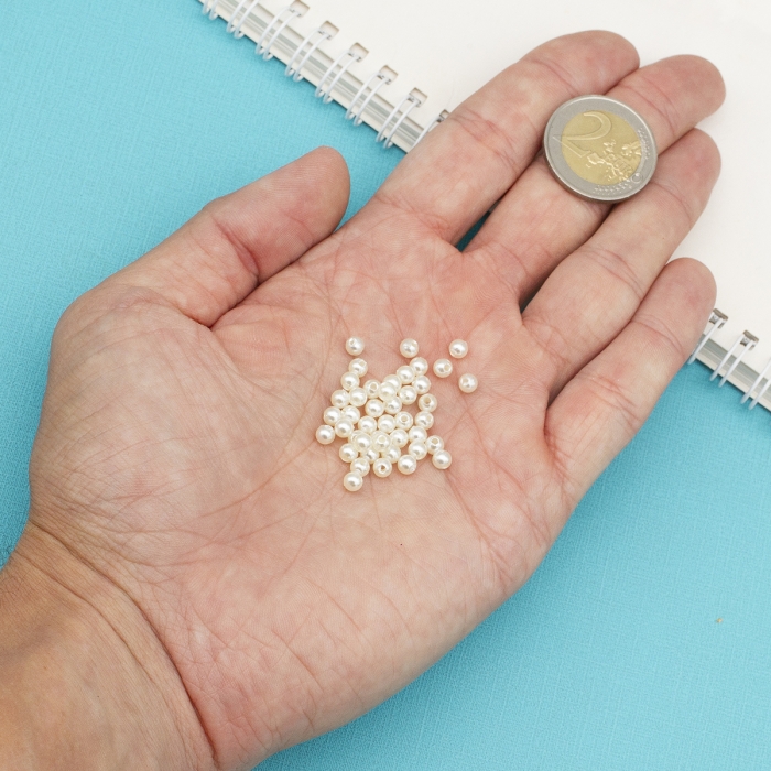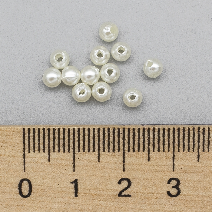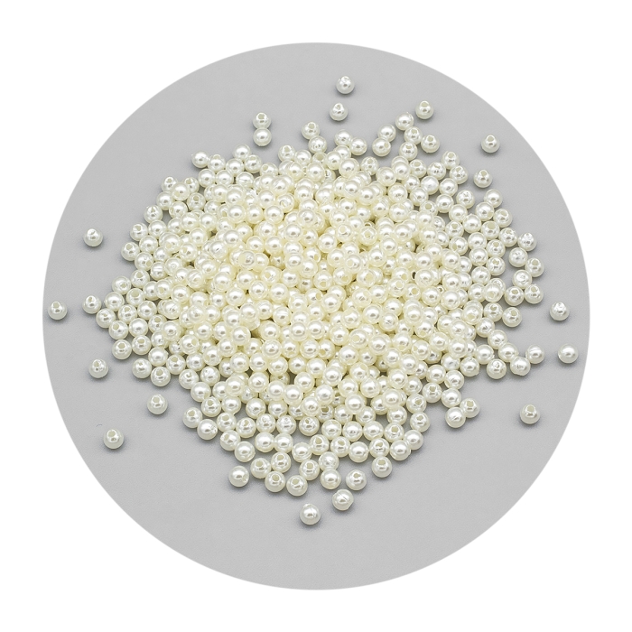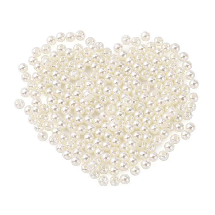 Koraliki Akrylowe, Imitacja Perły, Błyszczące, Barwiony, Okrągły, Kość Słoniowa, 4x3.5mm, około 850szt/25g (2WB30262)