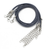 Baza Naszyjnika, Sznurek Woskowany Bawełniany z Zapięciem i Łańcuszkiem, Jasnoszary, 43.5cmx1.5mm, 5szt (13WB30056)