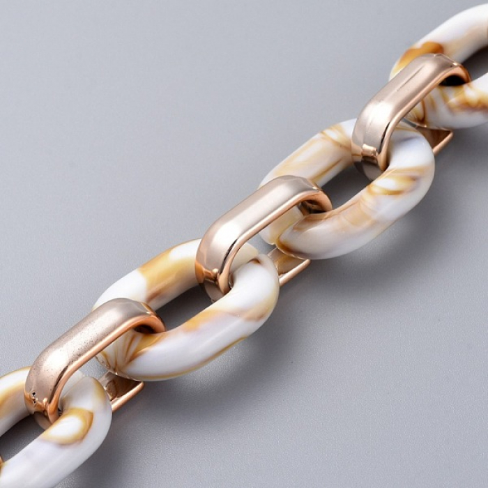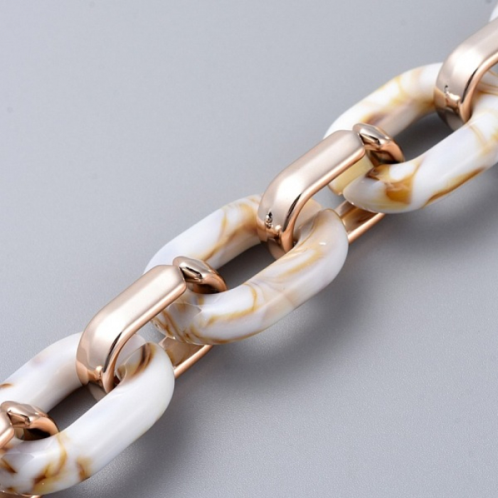 Łańcuszek Akrylowy, Ręcznie Robiony, Owalny, Imitacja Kamienia Naturalnego, Splot Kotwica, Plastik CCB z Pokryciem w Kolorze Różowego Złota,