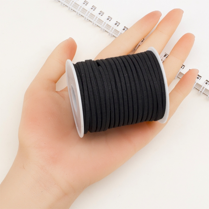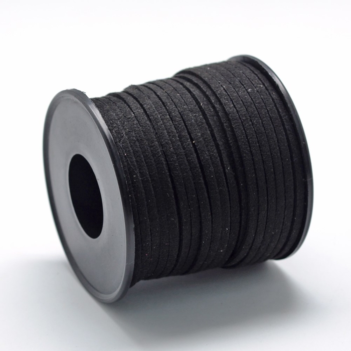 Rzemyk, Rzemień Zamszowy do Robienia Bransoletek i Biżuterii, Czarny, 2.7x1.5mm, 25m/szpula (13WB28100)Opakowanie: