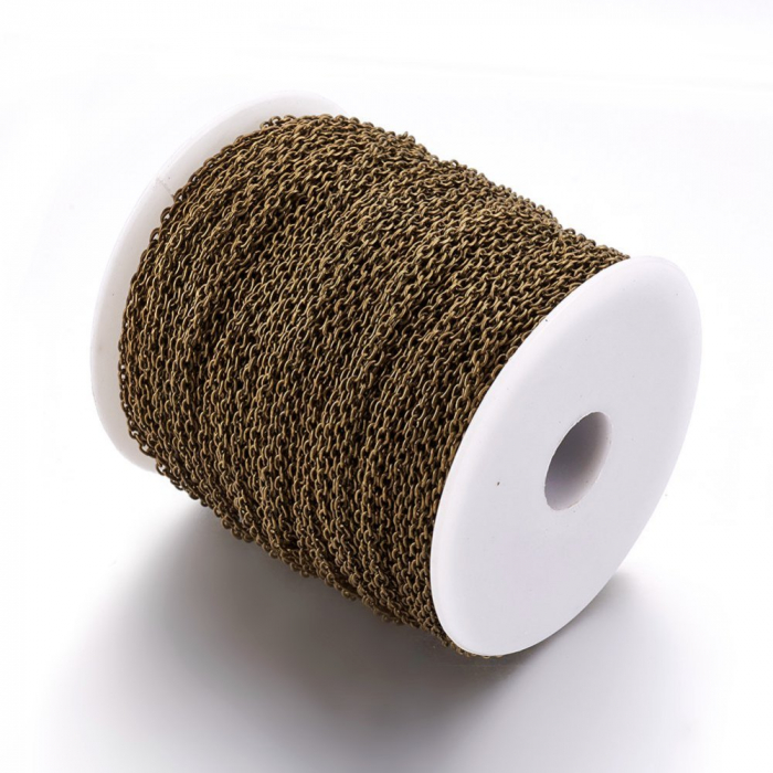 Łańcuch Kotwiczny, Żelazny, Niespawany, do Tworzenia Biżuterii, Kolor: Bronze, 3x2x0.5mm, 5m (5WB5992)