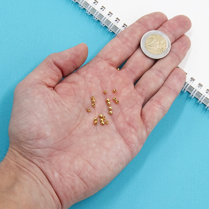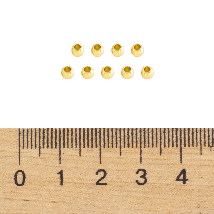 Koraliki Eco Mosiądz Okrągłe, Pozłacane 18K, 3mm, Otwór 1mm, 20szt (13WB19014)