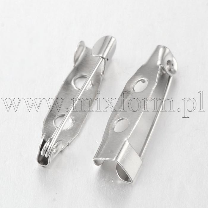 Baza do Broszki Żelazna, Szpilka, z 2 Otworami, Kolor: Platyna
