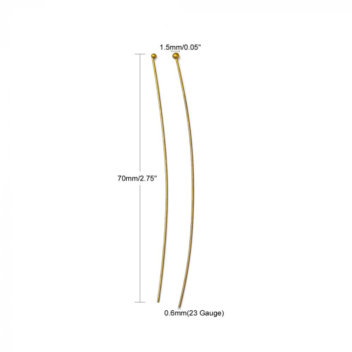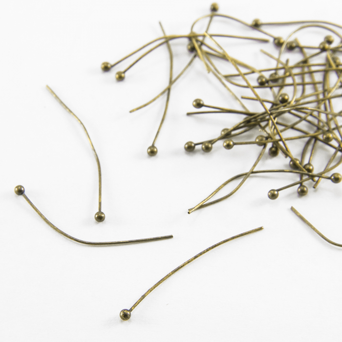 Szpilki z Kulką Mosiądz, Bronze, 70x0.6mm, Kulka 1.5mm, 30szt (13WB17701)