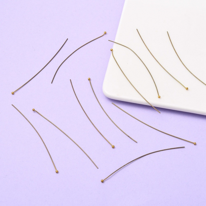 Piny z kulką z mosiądzu to uniwersalne elementy, szeroko stosowane do tworzenia zawieszek i innych biżuterii. Mosiądz jest hipoalergiczny, nie wywołuje reakcji skórnych i jest odporny na działanie wody, co sprawia, że te piny są niezawodnym i stylowym wyborem do biżuterii, która będzie cieszyć oko przez długi czas. Dekoracyjna kulka na końcu dodaje wyrobom wyrafinowania i dopełnia ich wygląd, wprowadzając subtelny akcent do projektu.