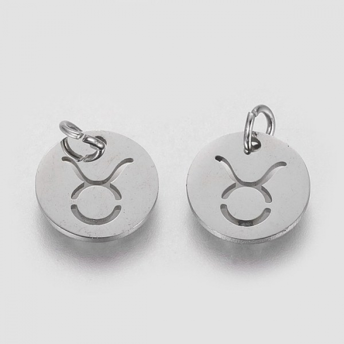 Zawieszka, Stal Nierdzewna 304, Znak Zodiaku/Znak Byk, Okrągła Płaska