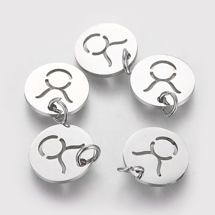 Okrągły płaski wisiorek ze stali nierdzewnej ze znakiem zodiaku to stylowa biżuteria wykonana z mocnego i trwałego materiału. Wykonany ze stali nierdzewnej, zapewnia odporność na korozję i zachowuje swój blask przez długi czas. Projekt znaku konstelacji nadaje wisiorkowi niepowtarzalny i osobisty wygląd, dzięki czemu jest on doskonałym dodatkiem dla miłośników astrologii lub osób ceniących indywidualność w biżuterii.