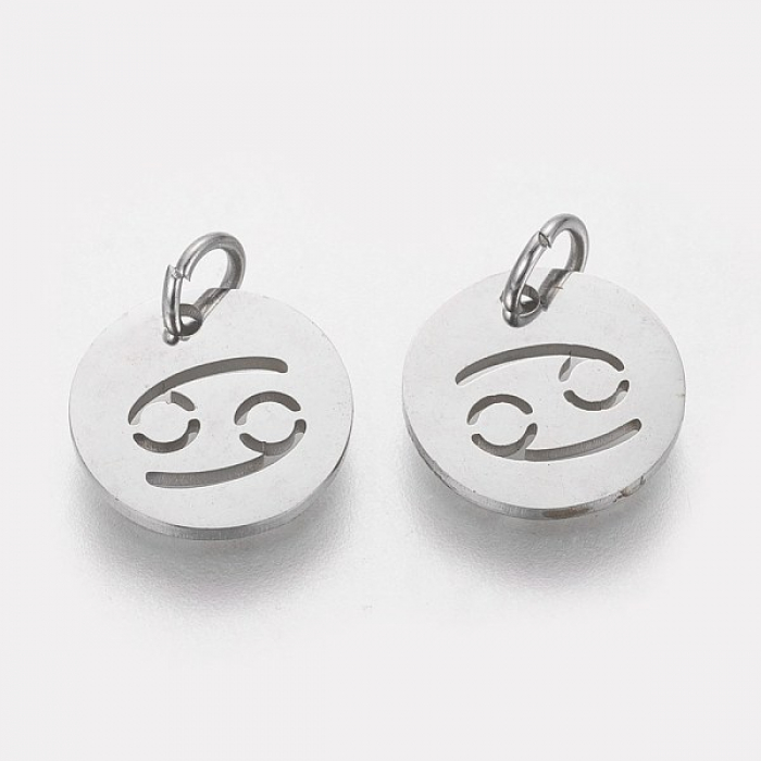 Zawieszka Znak Zodiaku Rak, Stal Nierdzewna, 12x1mm, Otwór 3mm, 5szt (13WB23770)