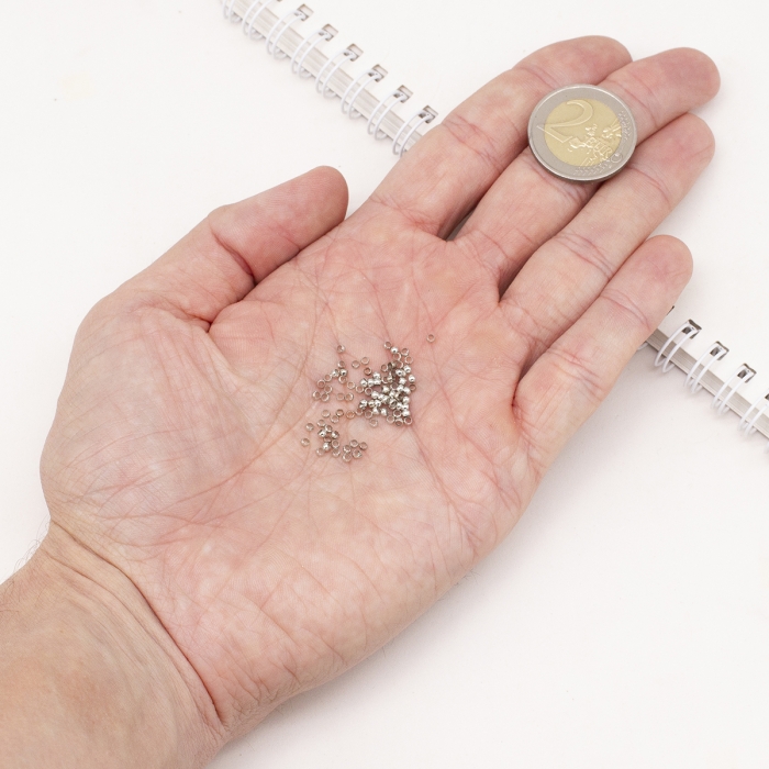 Zatrzaski (koraliki zaciskowe) z mosiądzu to małe, ale funkcjonalne elementy, które są używane do montażu biżuterii na żyłce lub drucie. Ich cienkie ścianki i szeroki otwór umożliwiają łatwe zaciskanie koralików w trakcie pracy, zapewniając pewne mocowanie dekoracyjnych elementów w odpowiedniej pozycji. Te zatrzaski są hipoalergiczne, co czyni je bezpiecznymi do długotrwałego użytkowania.