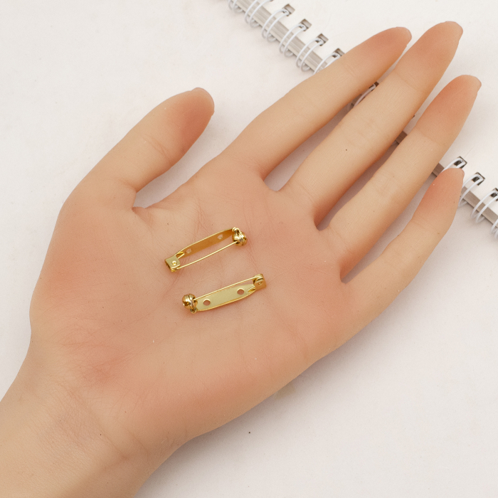Mosiężna baza do broszki z dwoma otworami i platerowana 18-karatowym złotem idealnie nadaje się do tworzenia stylowych i spersonalizowanych akcesoriów. Baza wykonana została z wysokiej jakości mosiądzu AAA, co gwarantuje jej trwałość i odporność na zużycie. Przypinki wyposażone są w zapięcie z tyłu broszki, które zapewnia łatwe i pewne zapięcie. Można stworzyć wyjątkowy dodatek, który będzie harmonijnie prezentował się na płaszczach, swetrach czy czapkach.