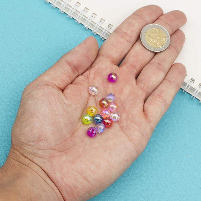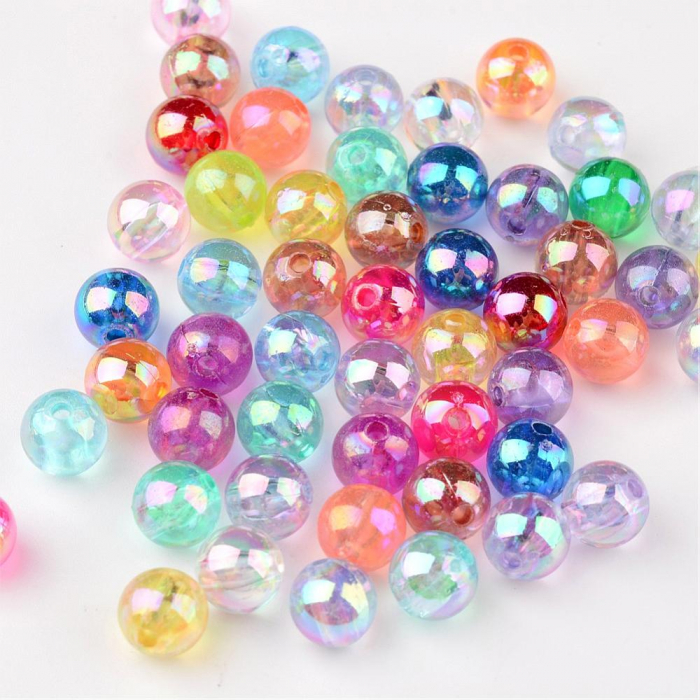 Намистини Акрил Прозорі, Екологічні, Круглі, АВ колір, Мікс, 8мм, Отвір 1.5мм, 95шт/25г, (13WB28917)