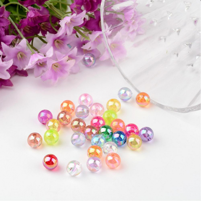 hot Намистини Акрил Прозорі, Екологічні, Круглі, АВ колір, Мікс, 8мм, Отвір 1.5мм, 95шт/25г, (13WB28917)