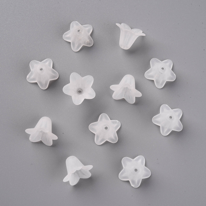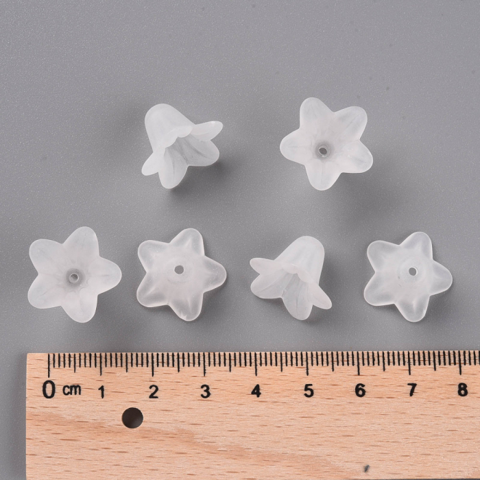 Намистини Акрил Матові, Прозорі, Квітка, Колір: Білий, Розмір: 17.5х12мм, Отвір 1.5мм, близько 38шт/25г, (13WB29501)
