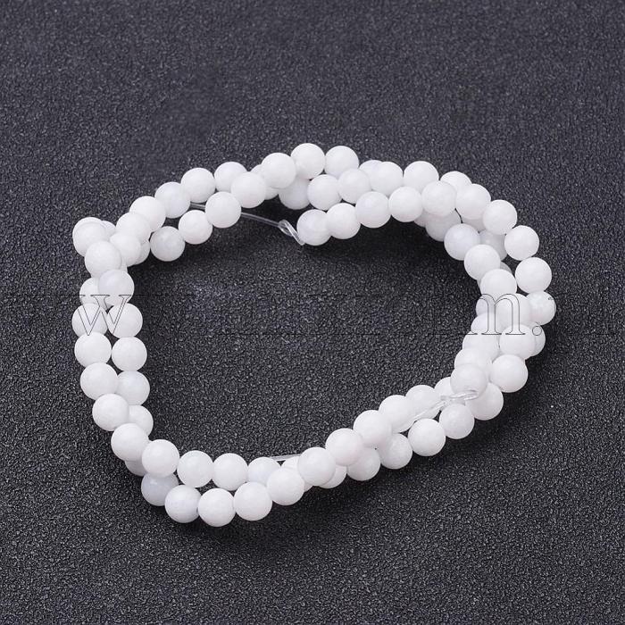 Намистини Натуральний Білий Нефрит, На нитках, Круглі, Білий, 6мм, Отвір 1мм, близько 64шт / нитка, (3WB3747)