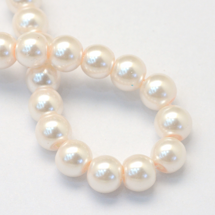 Перли Намистини Скляні Глянцеві Круглі, Стійке Забарвлення Колір: Античний Білий
