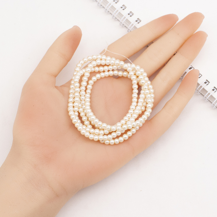 Скляні перлинні намистини широко використовуються у створенні прикрас. Їх вишуканий вигляд ідеально підходить для намист, браслетів, сережок та інших аксесуарів, надаючи виробам витонченості та елегантності. Крім того, такі намистини знаходять застосування в декоруванні одягу та аксесуарів, включаючи сукні, сумки та капелюхи, додаючи елемент розкоші та індивідуальності.