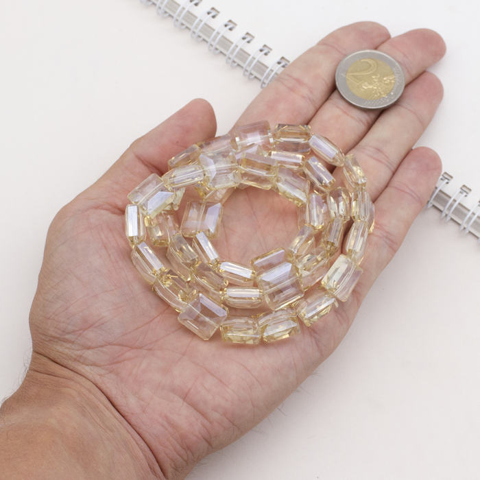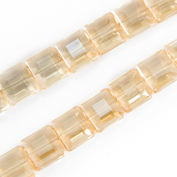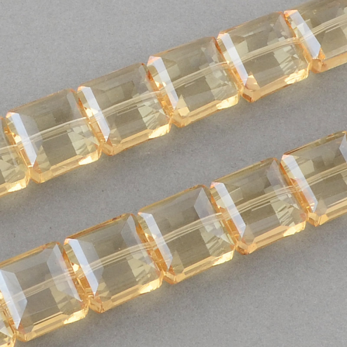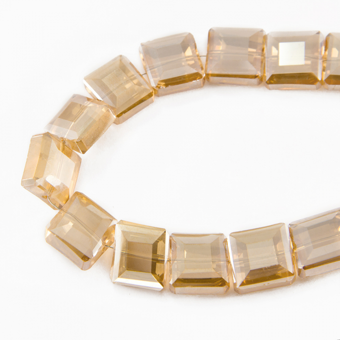 Намистини Гальваніка Скло АВ-Колір, Грановані, Квадрат, Колір: Шампань, Розмір: 13x13x7.5мм, Отв-тя: 2 мм, близько 40шт / 52см / нитка, (14WB6978)