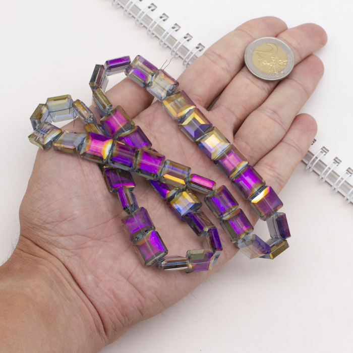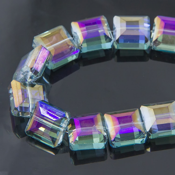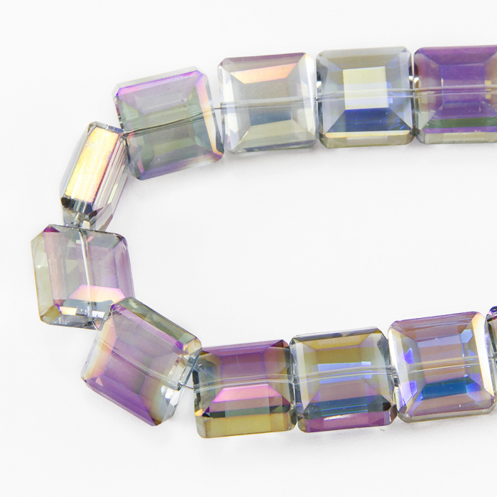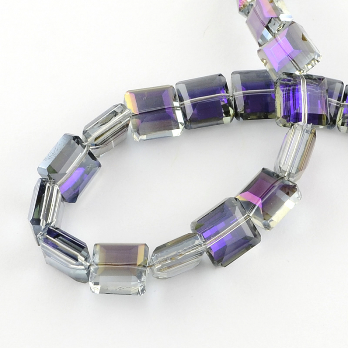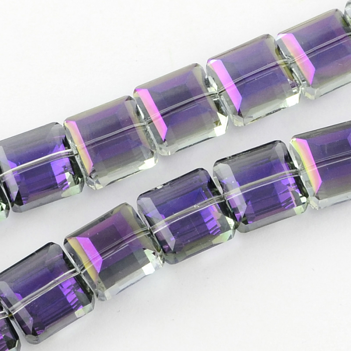 Намистини Гальваніка Скло АВ-Колір, Грановані, Квадрат, Колір: Бузковий, Розмір: 13x13x7.5мм, Отв-тя: 2 мм, близько 40шт / 52см / нитка, (14WB6979)