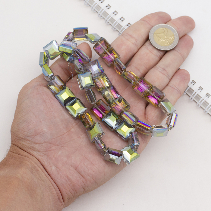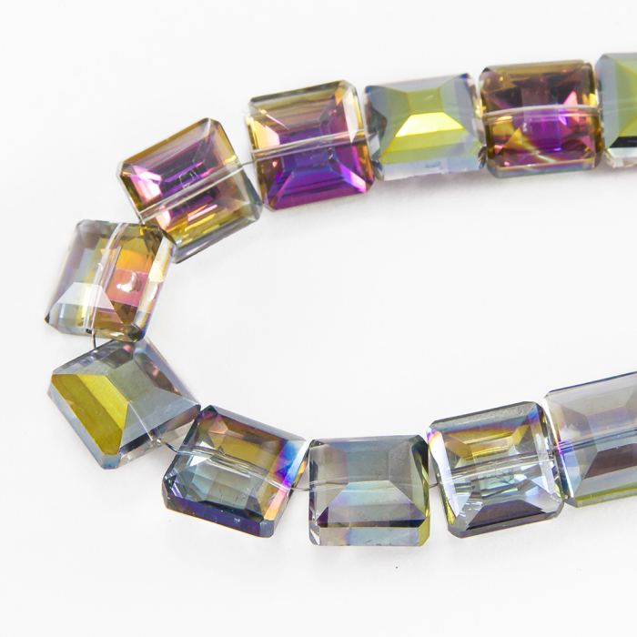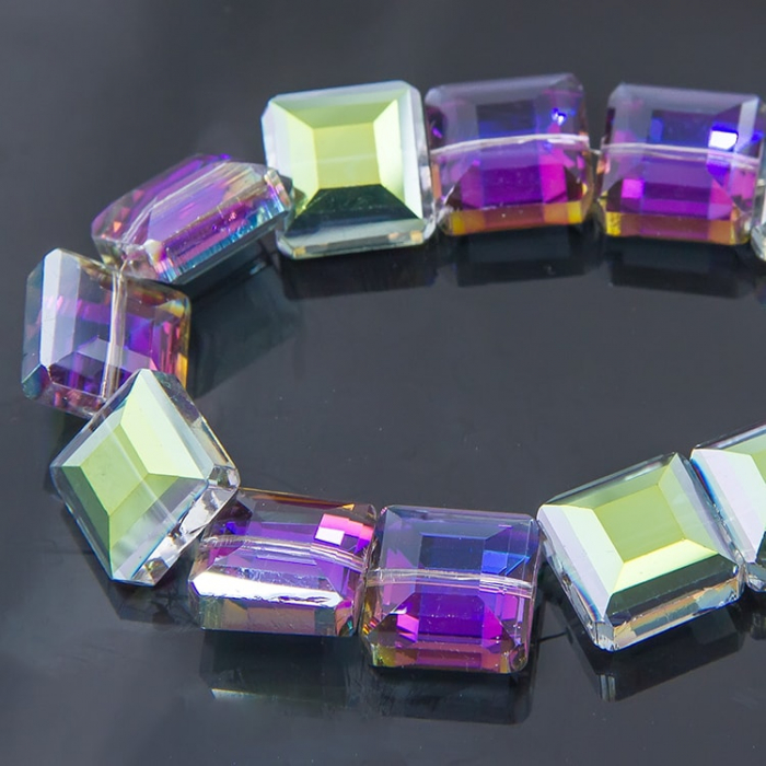 ✔Гарантія якості ✔Швидка доставка ✔Зручне замовлення ★ Намистини Гальваніка Скло АВ-Колір, Грановані, Квадрат, Колір: Салатовий, Розмір: 13x13x7.5мм, Отв-тя: 2 мм, близько 40шт / 52см / нитка, (14WB6981) у MixForm ➨ встигніть купити за вигідною ціною!