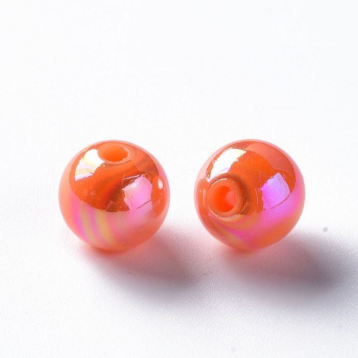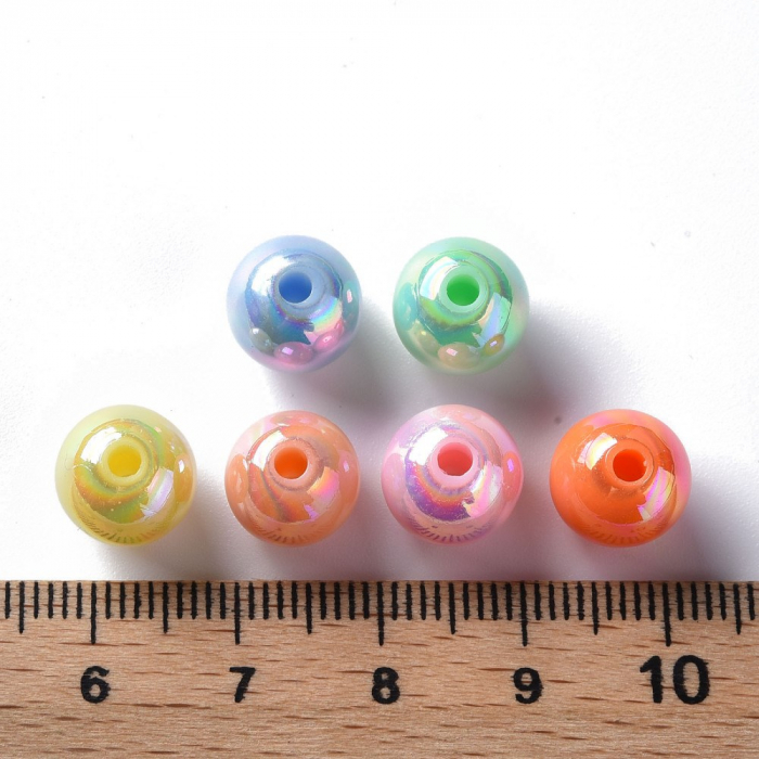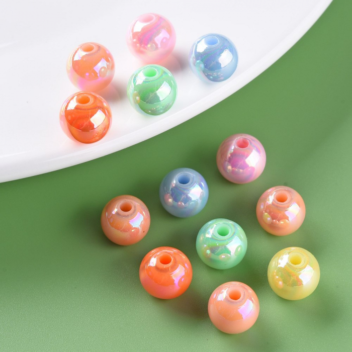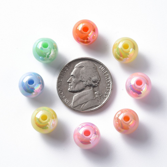 Намистини Акрилові, Непрозорі, з Райдужним покриттям, Круглі