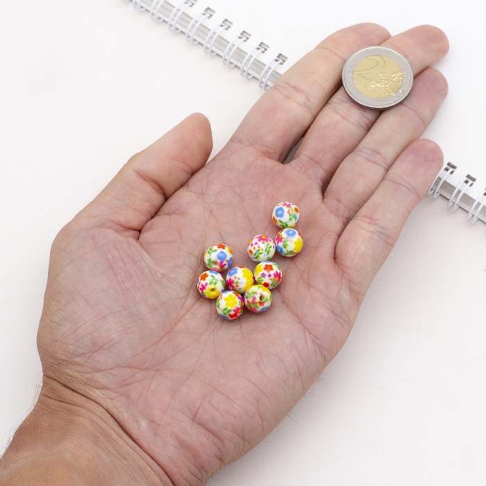 ✔Гарантія якості ✔Швидка доставка ✔Зручне замовлення ★ Намистини Смола, Круглі, Пофарбовані з Квітковим Візерунком, Колір: Різнобарвний, 10мм, Отвір 2мм, 10шт/упаковка, (13WB29522) у MixForm ➨ встигніть купити за вигідною ціною!