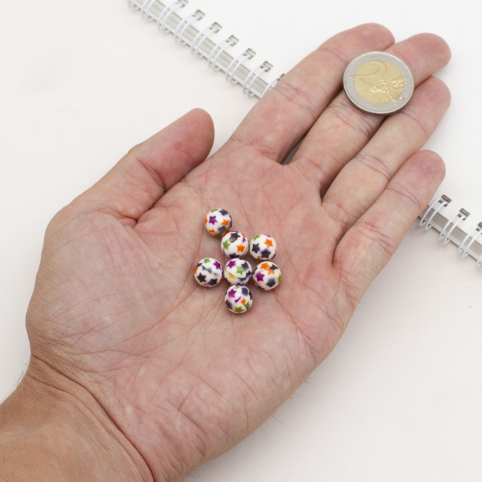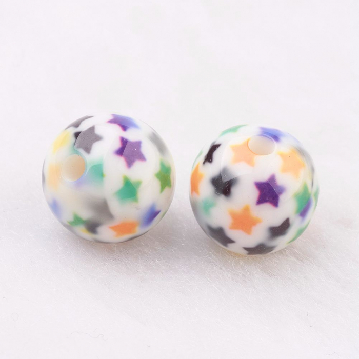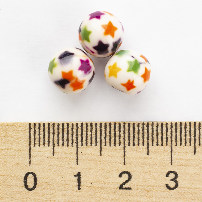 Намистини Смола, Круглі, Пофарбовані із Зоряним Малюнком, Колір: Різнобарвний, 10мм, Отвір 2мм, 10шт/упаковка, (13WB29525)