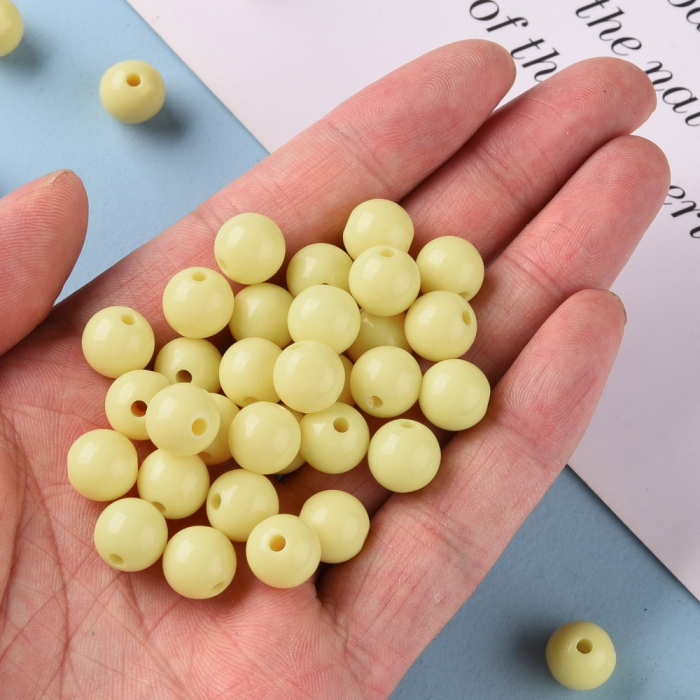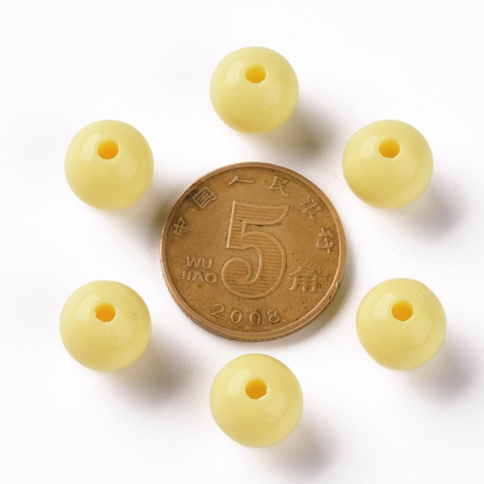 Намистини Акрилові Круглі, Колір: Жовтий, Розмір: 10х9мм, Отвір: 2мм, близько 90шт/50г, (13WB29558)