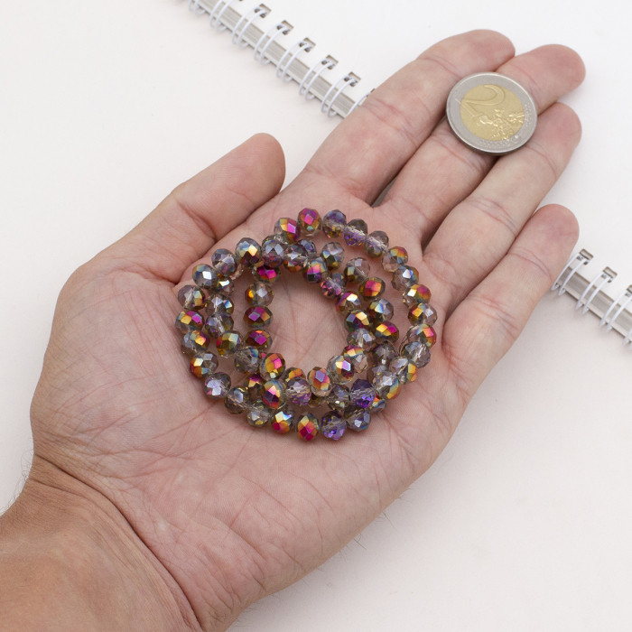 Намистини Гальванічне Скло, Грановані, Напівпокриття, Рондель, Колір: Рожеве Золото, 8х6мм, Отвір 1мм, ок. 65шт/40см/нитка (13WB29654)