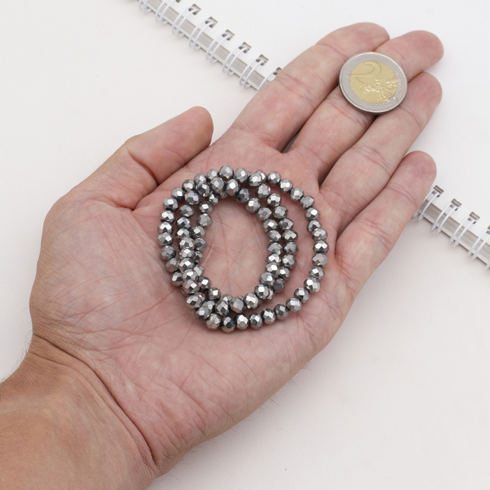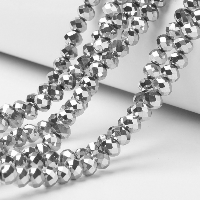 Намистини Гальваніка Скло, Платинове Покриття, Грановані, Рондель, 6х5мм, Отвір 1мм, близько 80шт/40см/нитка, (13WB29669)