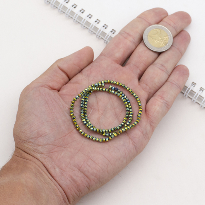 Намистини Гальваніка Скло, Зелене Покриття, Грановані, Рондель, 3х2мм, Отвір 0.8мм, близько 155шт/38см/нитка, (13WB29673)